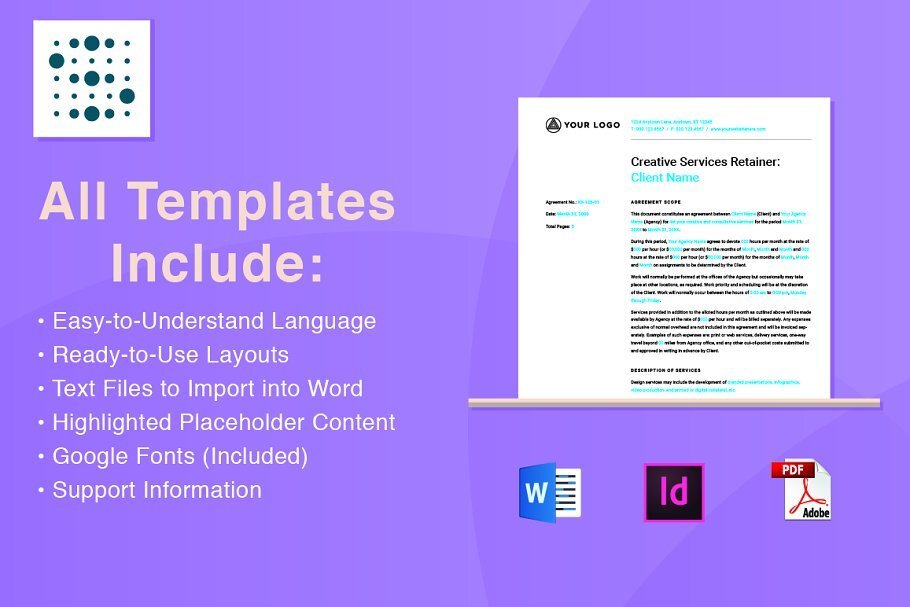 Our Essential Contracts 2 Bundle is a great addition to our first bundle. Our second bundle includes proposals that are written for longer-term, phased projects and a retainer agreement for services contracted over a period of time.