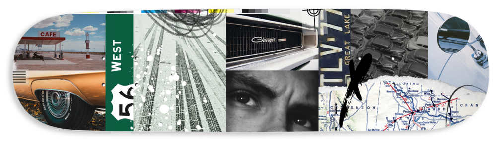 Our collage artwork printed on 7 sturdy plies of North American Maple. Perfect for the street, ramp or wall. 8” x 33” size.